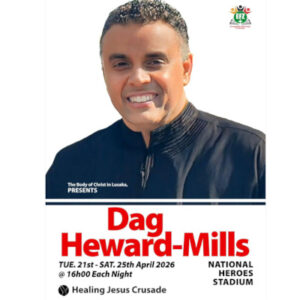 Venue Announcement:Healing Jesus Crusade Lusaka with International Healing Evangelist Dag Heward-Mills. Dates: April 21st – 25thVenue: National Heroes Stadium, LusakaTime: 16h00 each night. Lusaka, get ready!